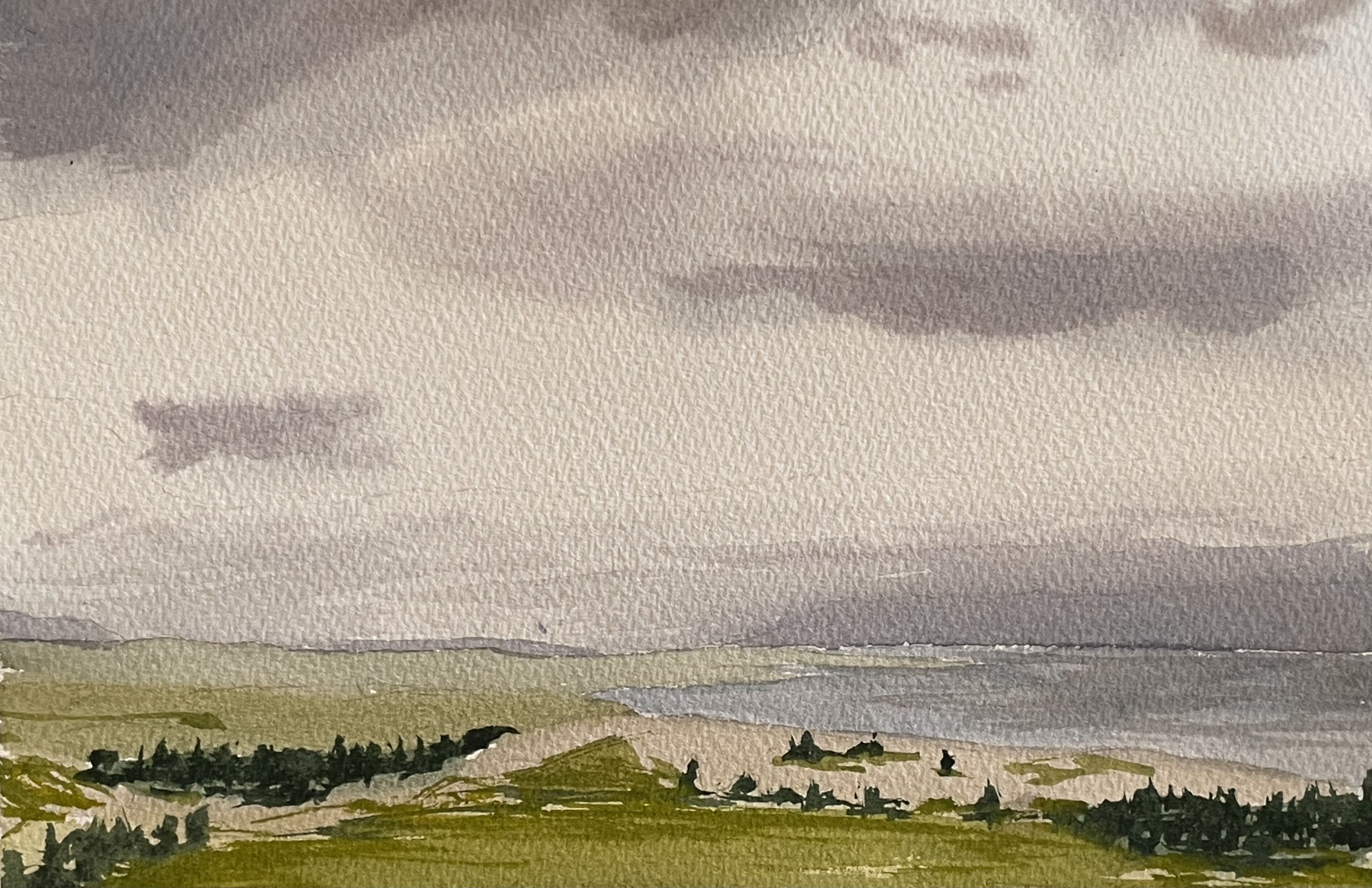 Við Gerða systir fórum út í Krossanesborgir að mála vatnslitamyndir ekki til að skoða fugla. Það var norðanátt og kalt, rigndi á okkur í fuglaskoðunarkofanum. Með þrautseigju tókst okkur að mála. Í haust tók ég upp myndefnið og málaði við betri aðstæður eftir námskeið hjá Rannveigu Helgadóttur. Hér er árangurinn.