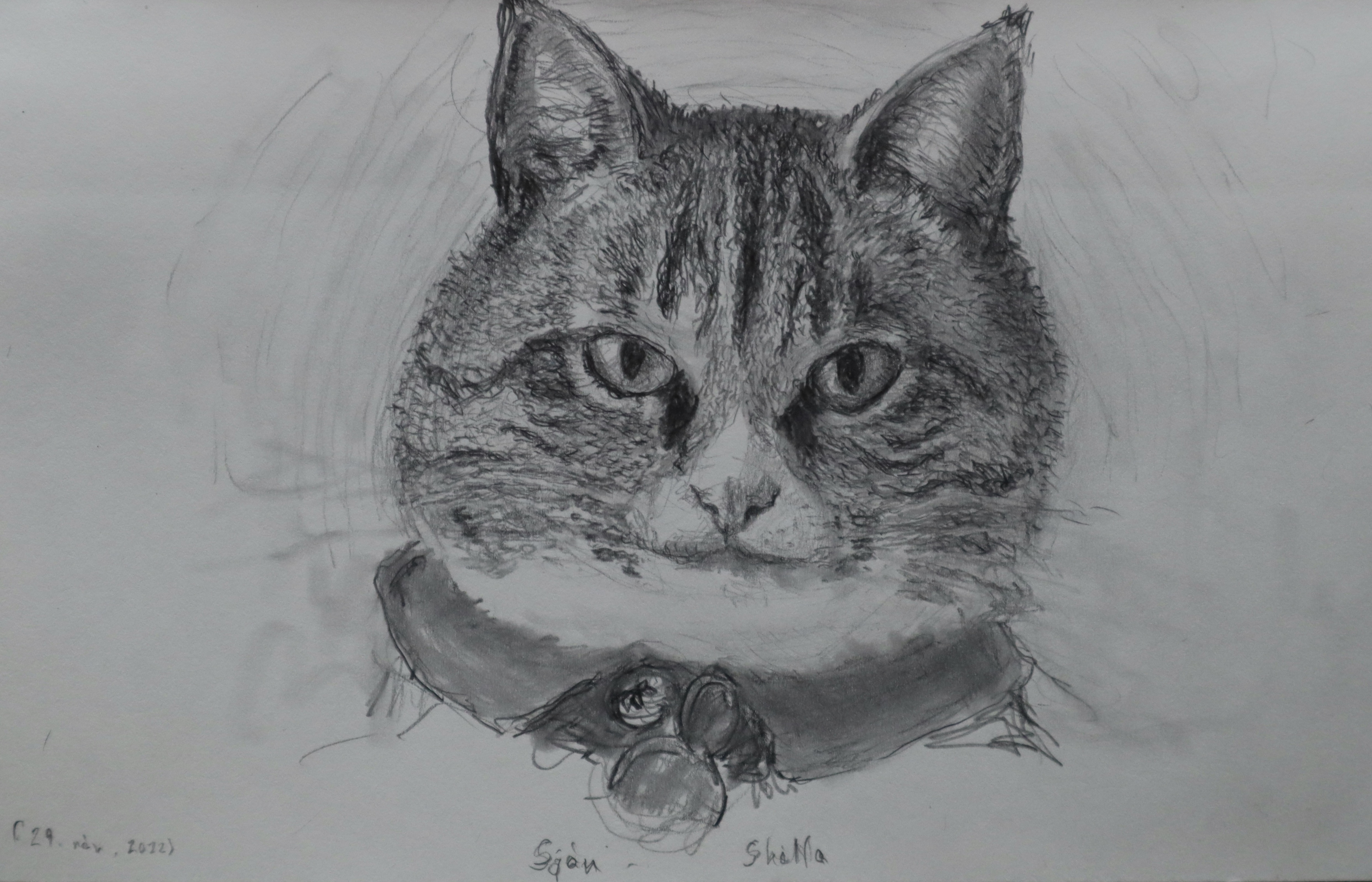 Blýantsteikning, 20×12 cm. Horfa og sjá – Skotta
