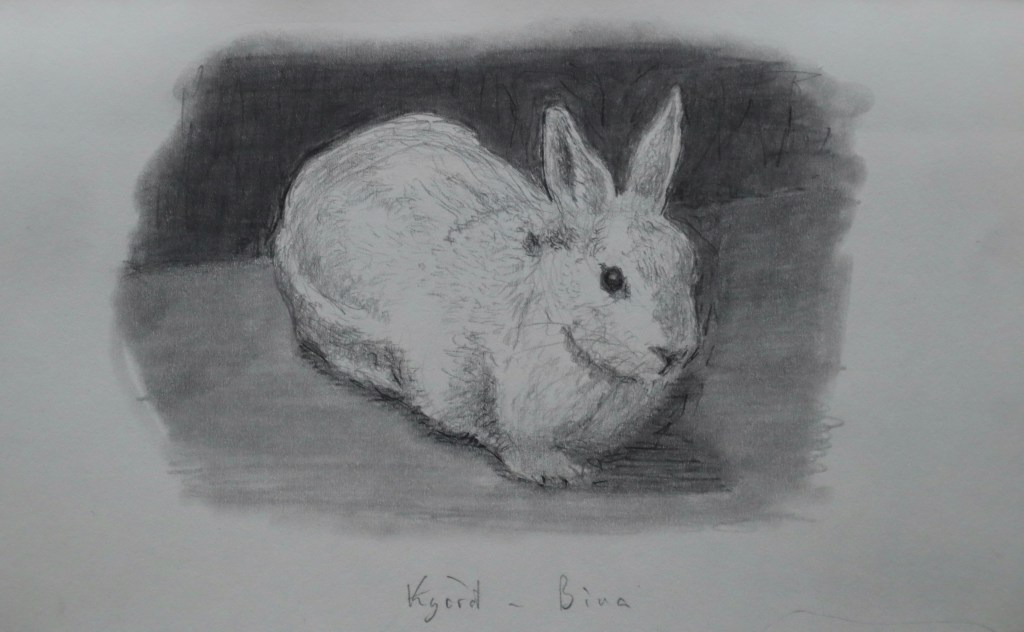 Blýantsteikning, 20×12 cm. Kyrrð – Bína