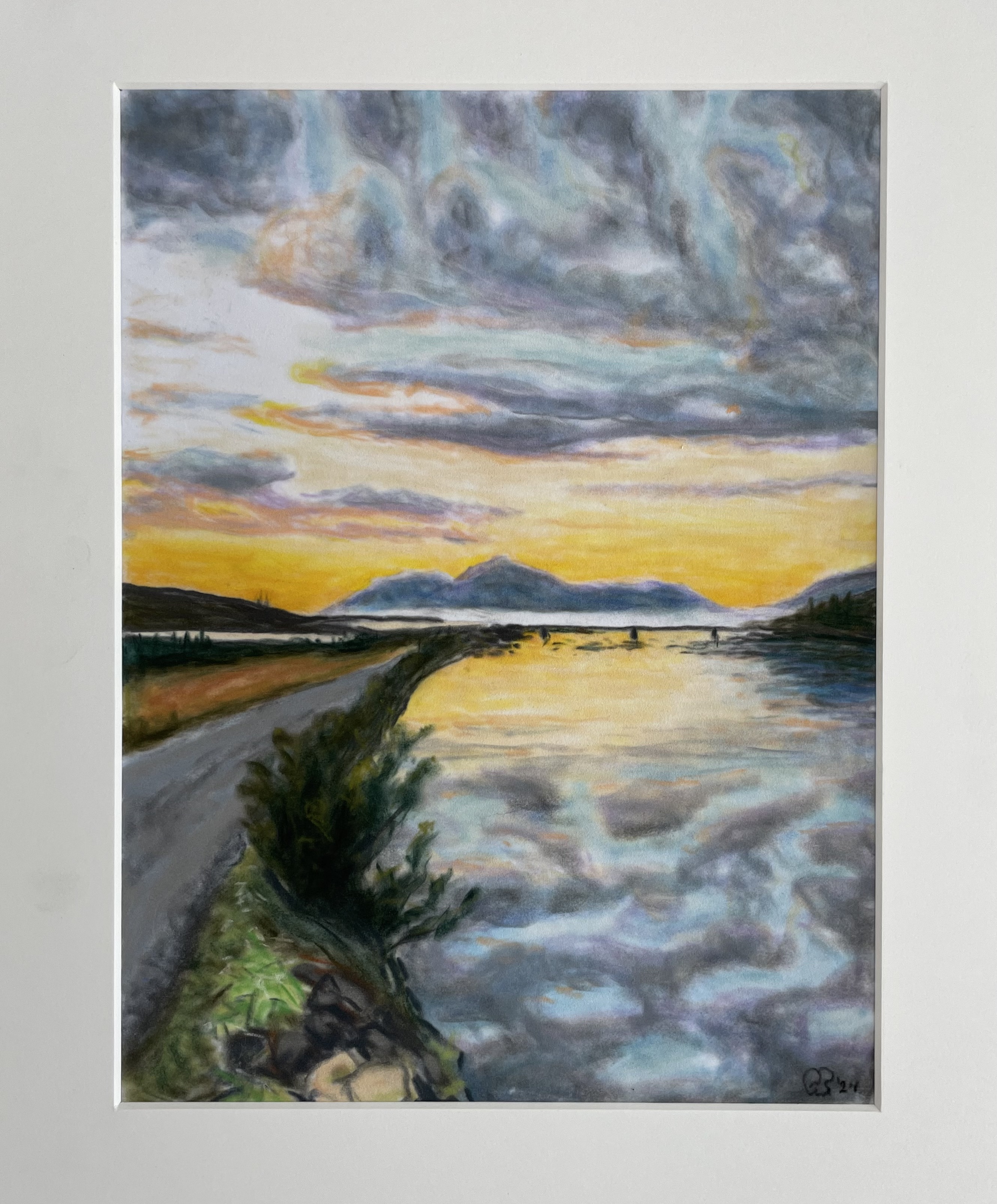 Lokaverkefni mitt vorið 2024 í Myndlistarskóla Akureyrar var þriggja mynda sería af landslagsmyndum sem túlka eiga sumarkomu og lausn. Allar frá nágrenni Akureyrar gerðar með þurrpastel á velour pappír. Stærð 40 x 30 cm. Sýndar á vorsýningu skólans sem lauk 12. maí.