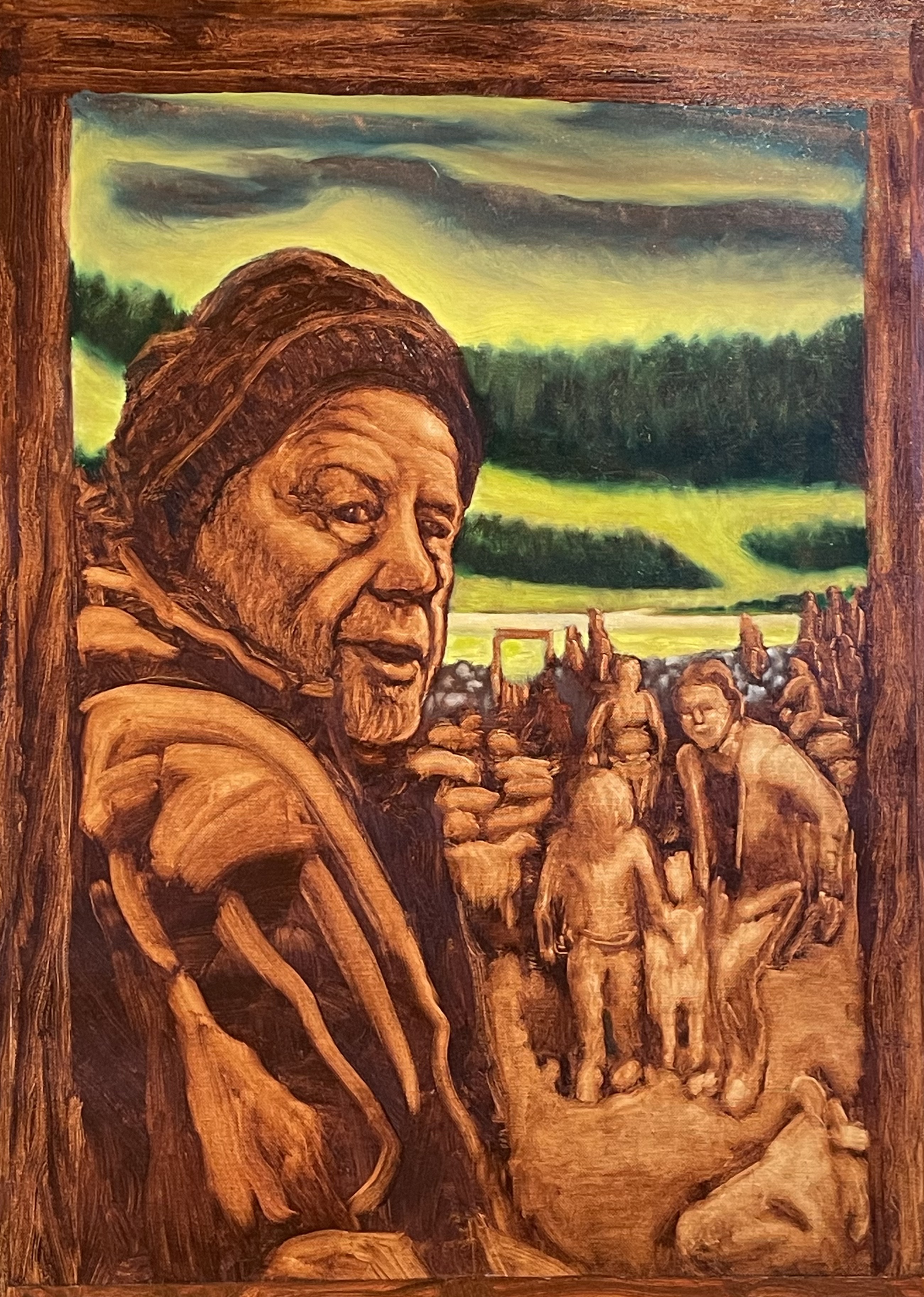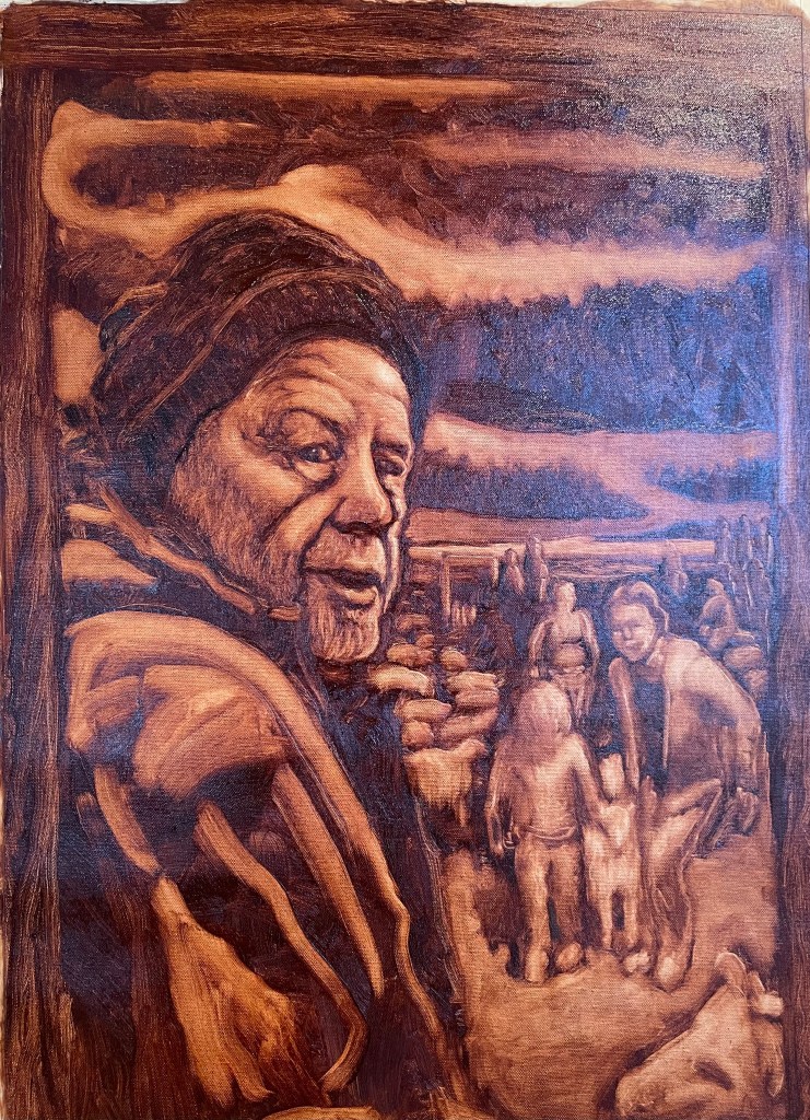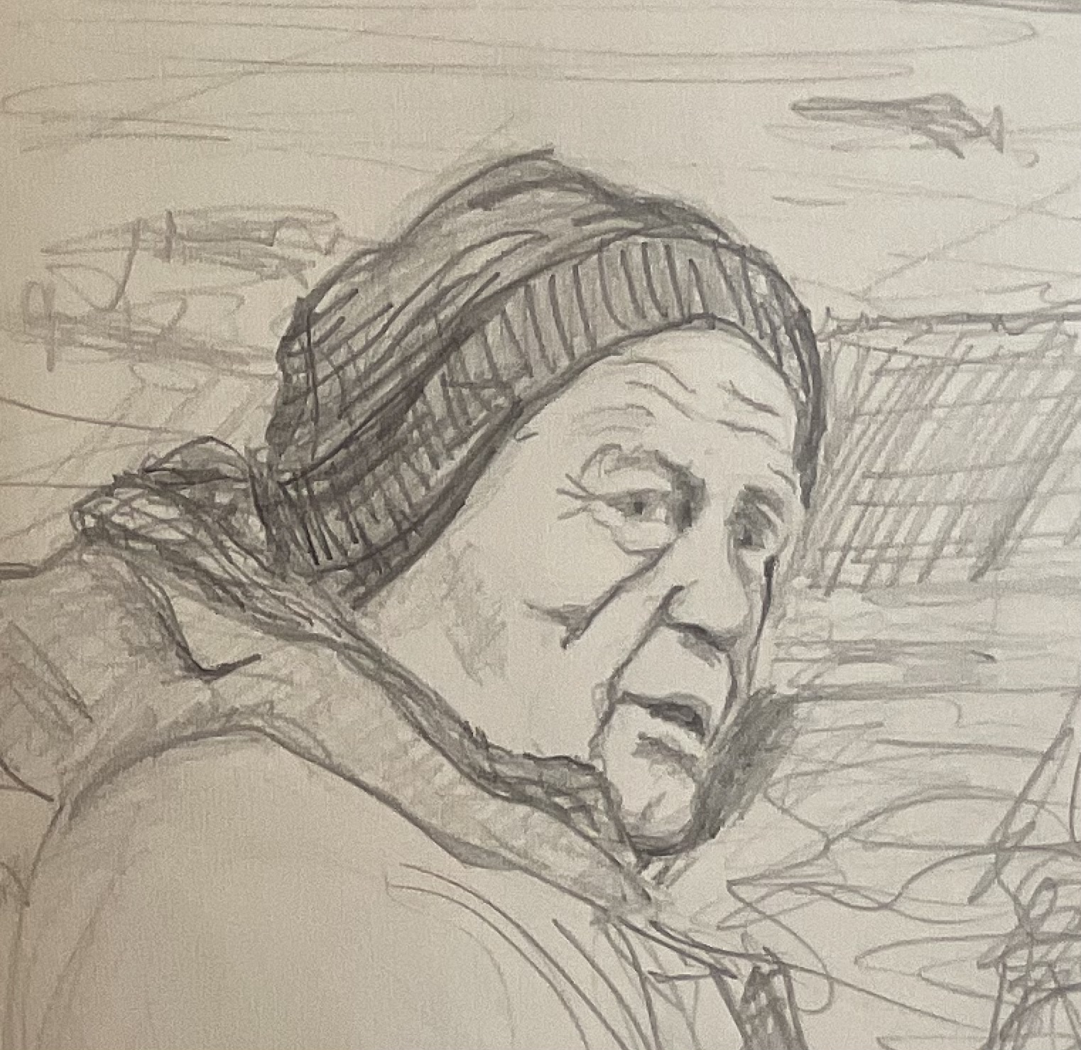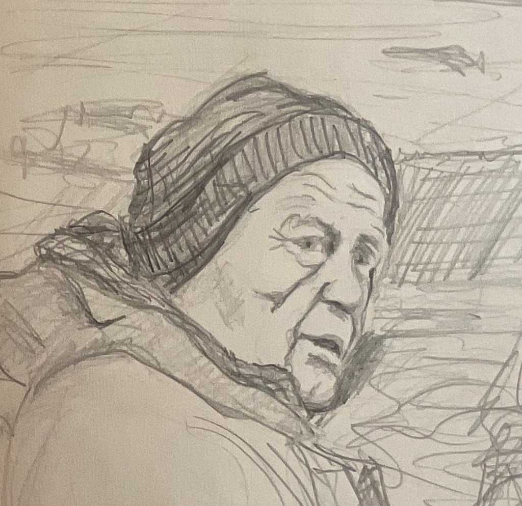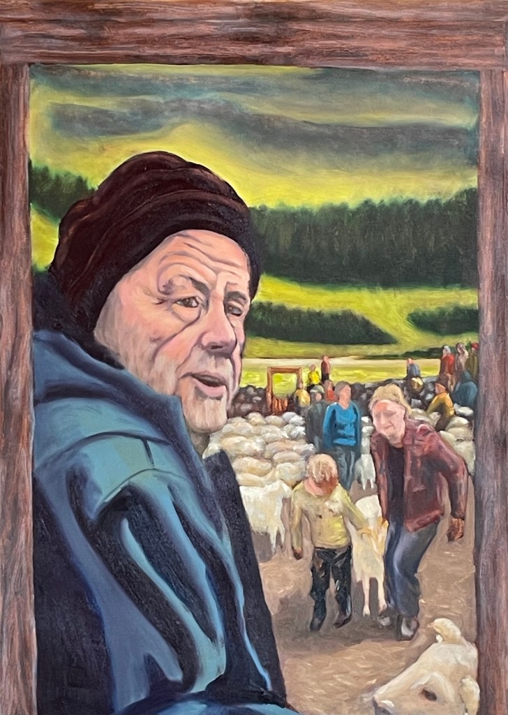 Í haust fórum við Ingibjörg í Melarétt á Austurlandi með Hrafni Heiðari syni okkar og Bríeti hans. Það var frekar kalt þennan dag og haustlegt en þegar maður málar er svo dásamlegt að geta lagað eitt og annað eins og veðrið. Þá sá ég þennan íslenska bónda í sauðahliðinu. Byrjaði á að teikna hann.