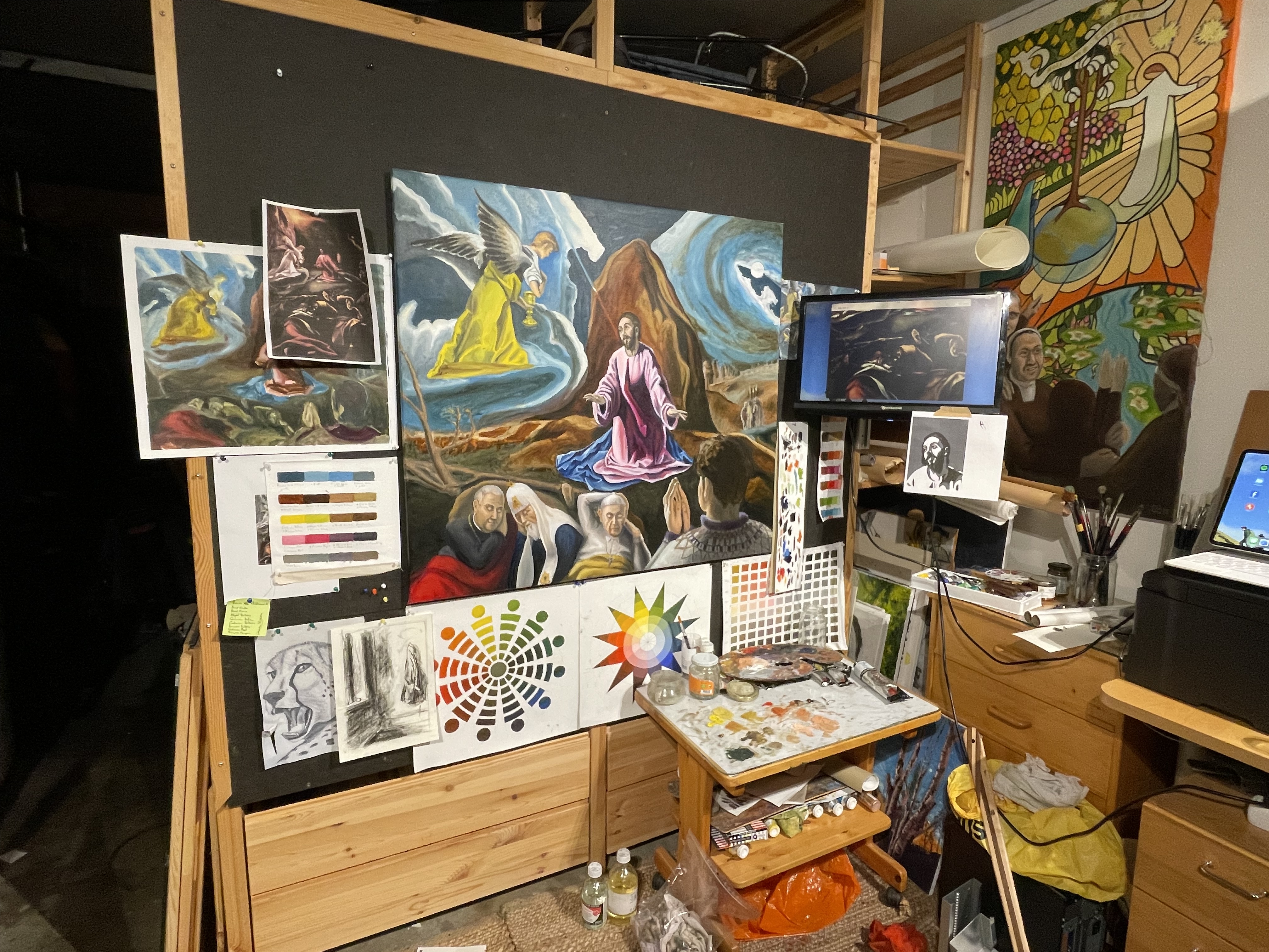 Læti fylgja með mynd úr stúdíóinu mínu þar sem ég er að leggja lokahönd og verkin. Vona að málningin verði nokkurn veginn þornuð á miðvikudaginn. Síðastliði vor lauk ég námi frá Myndlistarskólanum á Akureyri og naut liðsagnar Stefáns Bolter í olíumálum ofl. Í dag er ég í fjarnámi hjá Juliette Aristides í skóla sem nefnist Terracotta í Bandaríkjunum.