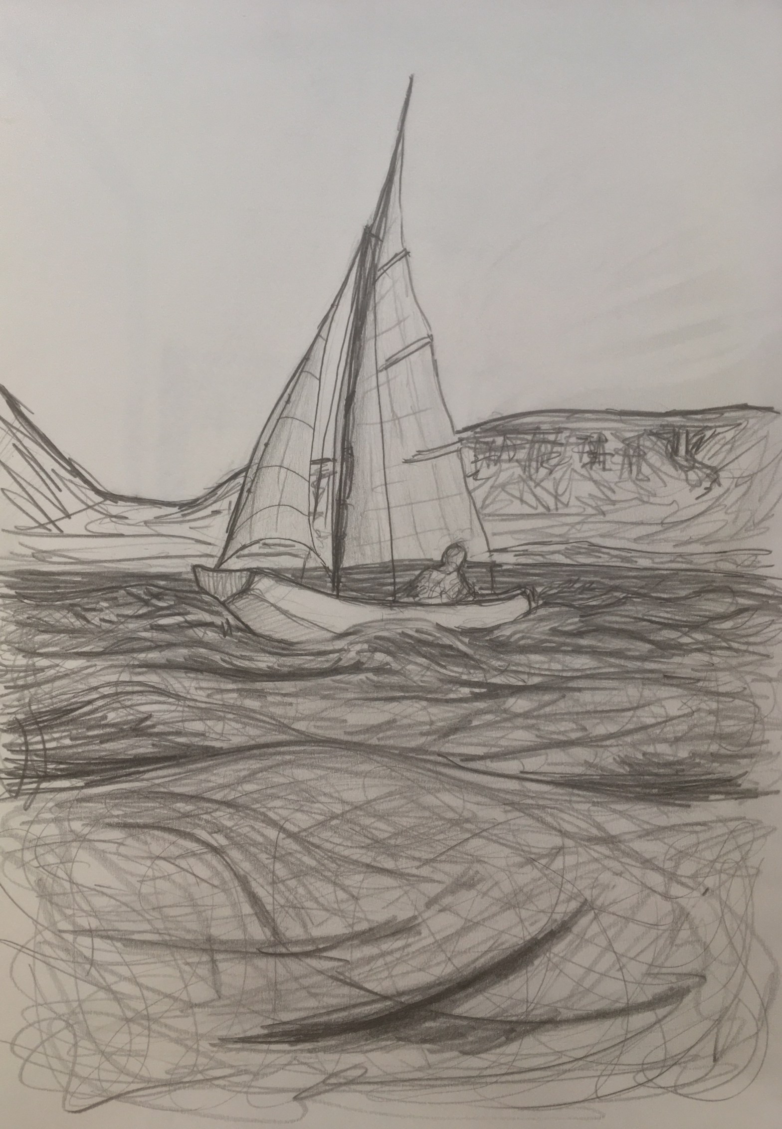 Í Vatnaskógi var þessi skúta sem ég skemmti mér oft við að sigla á góðum dögum. Myndina teiknaði ég um 1990. Stærð A3.